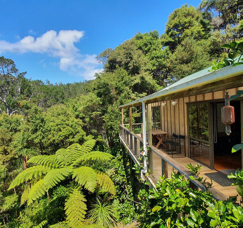 Step onto the long, sun-drenched deck and you're immediately surrounded by nature: towering tree ferns, dappled light, and the soft movement of the forest. Inside, you'll find a charming open-plan living area with high ceilings, timber accents, and a cosy wood burner. Two comfortable bedrooms plus a separate sleepout mean there is plenty of space for family and friends. This is the kind of place where weekends stretch out, afternoons drift into evenings on the deck, and life slows to island time.